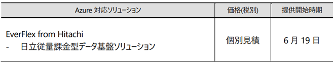 株式会社日立製作所(以下、日立)は、ハイブリッドクラウドソリューションEverFlex from Hitachi(以下、EverFlex)を強化し、日本マイクロソフト株式会社(以下、マイクロソフト)のMicrosoft Azure(以下、Azure)に対応したソリューションを、本日より提供開始します。