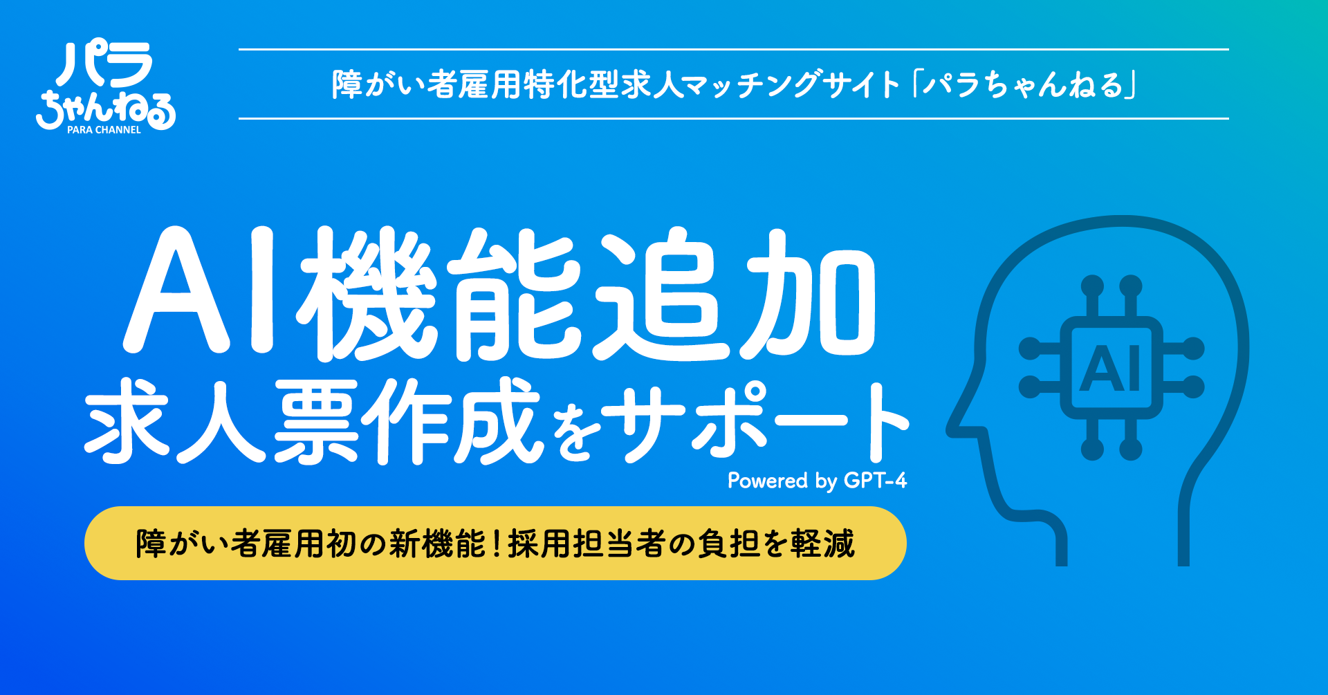 AIによる新機能を含め、パラちゃんねるのアカウント作成や求人掲載などすべて無料でご利用いただけます。私たちはこの新機能を活用することで、障がい者雇用の推進に寄与し、企業と求職者がより良いマッチングを見つける手助けとなることを願っております。