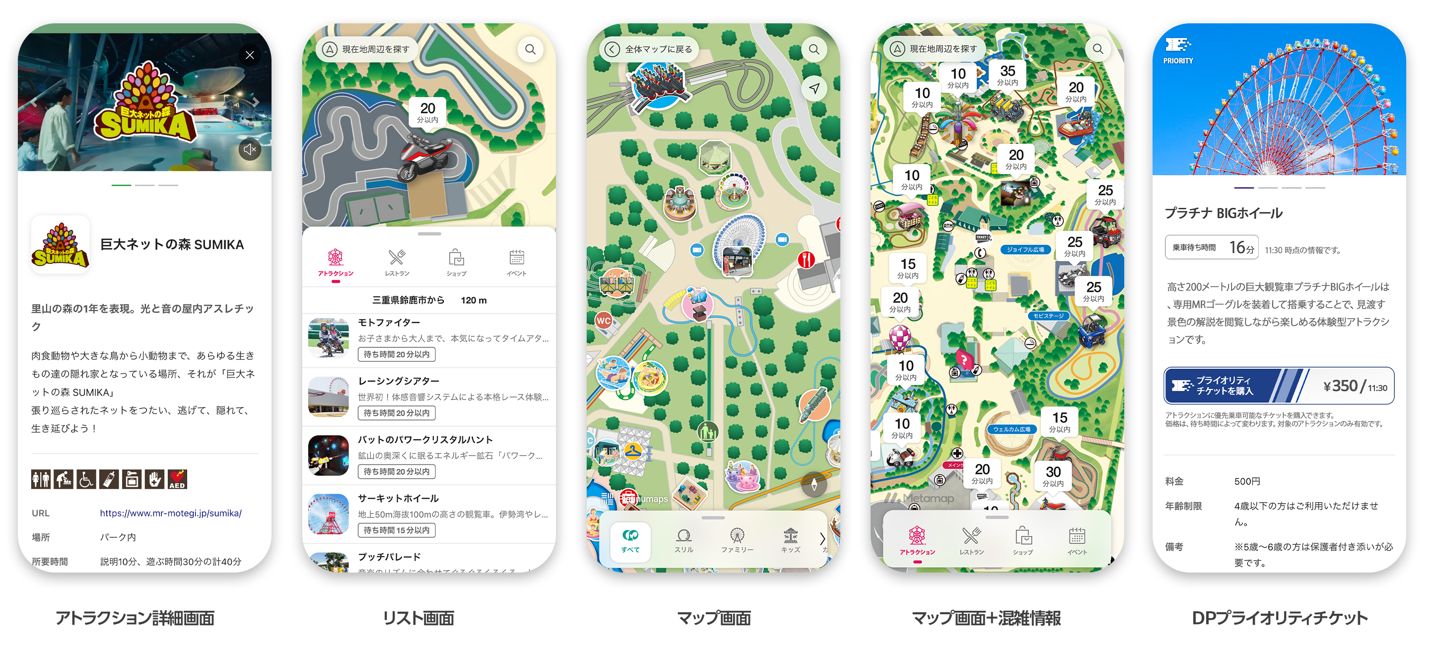 遊園地などのレジャー施設の魅力を高めるべく、各アトラクションとの連携により体験価値を向上させることを目ざします。混雑状況に応じたダイナミックプライシングを実現するプライオリティチケットシステムに続き、施設のファン、リピーター獲得や施設経営改善のための様々な仕組みを構築してまいります。