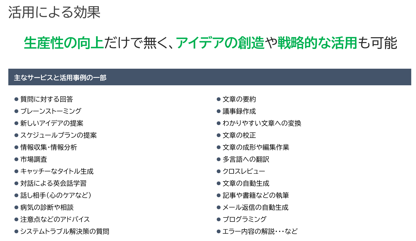 「IDコンシェルジュ」は、社内インフラ内のみで利用可能なサービスとしています。また、入力された情報がAIの学習データとして二次利用されない仕様とすることで、情報漏洩防止の対策を実現し、生成AI利用の課題となっているセキュリティを担保しています。今後は当社独自の情報を学習させるなどの改良を加え、社内業務の効率化やアイデアの創造、情報収集やデータ分析などに活用の幅を広げる方針です。