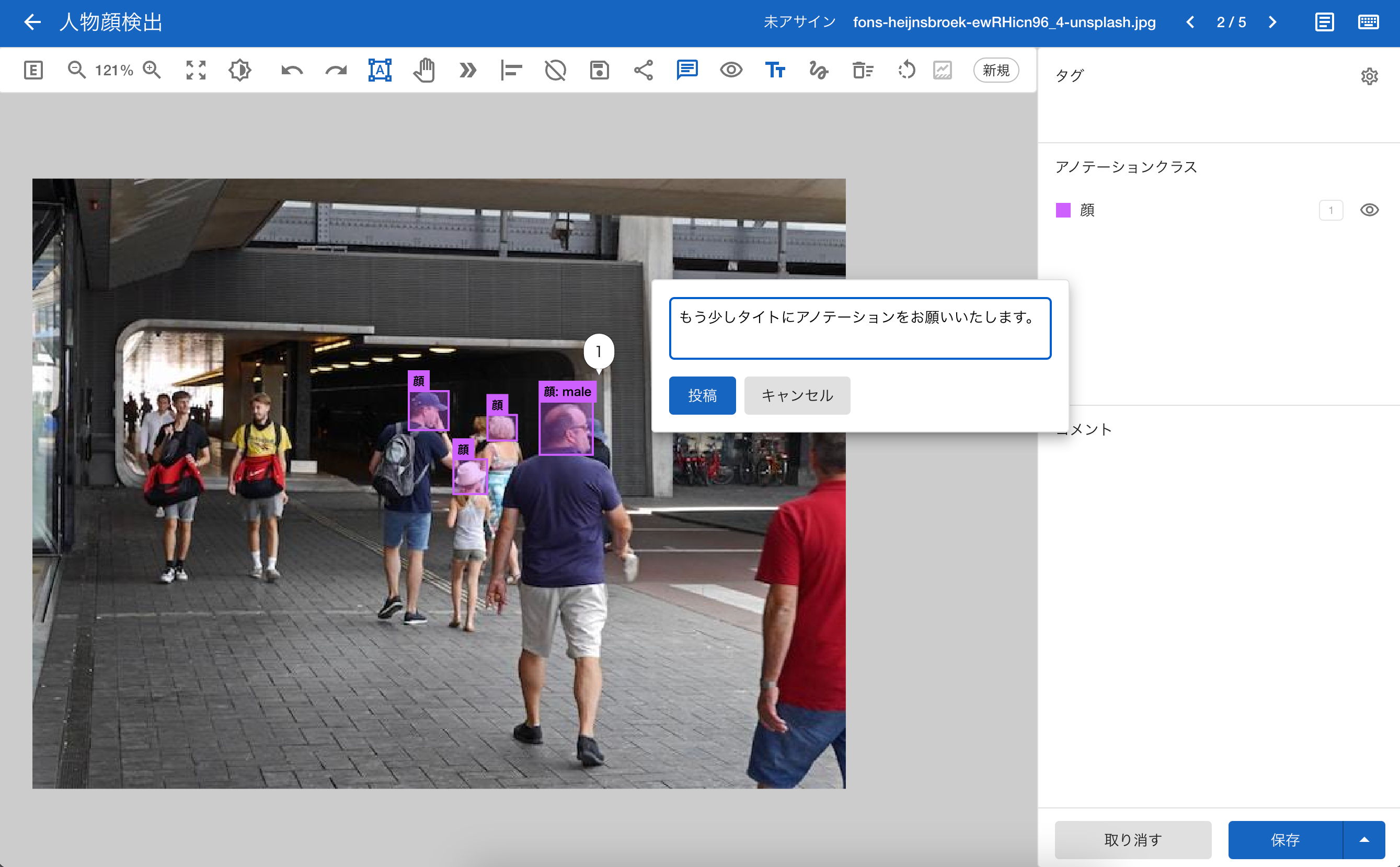 アノテーション作業画面上に直接コメントを付与することができるので、実データ上で仕様について認識合わせることができるようになり、作業品質の標準化が可能です。