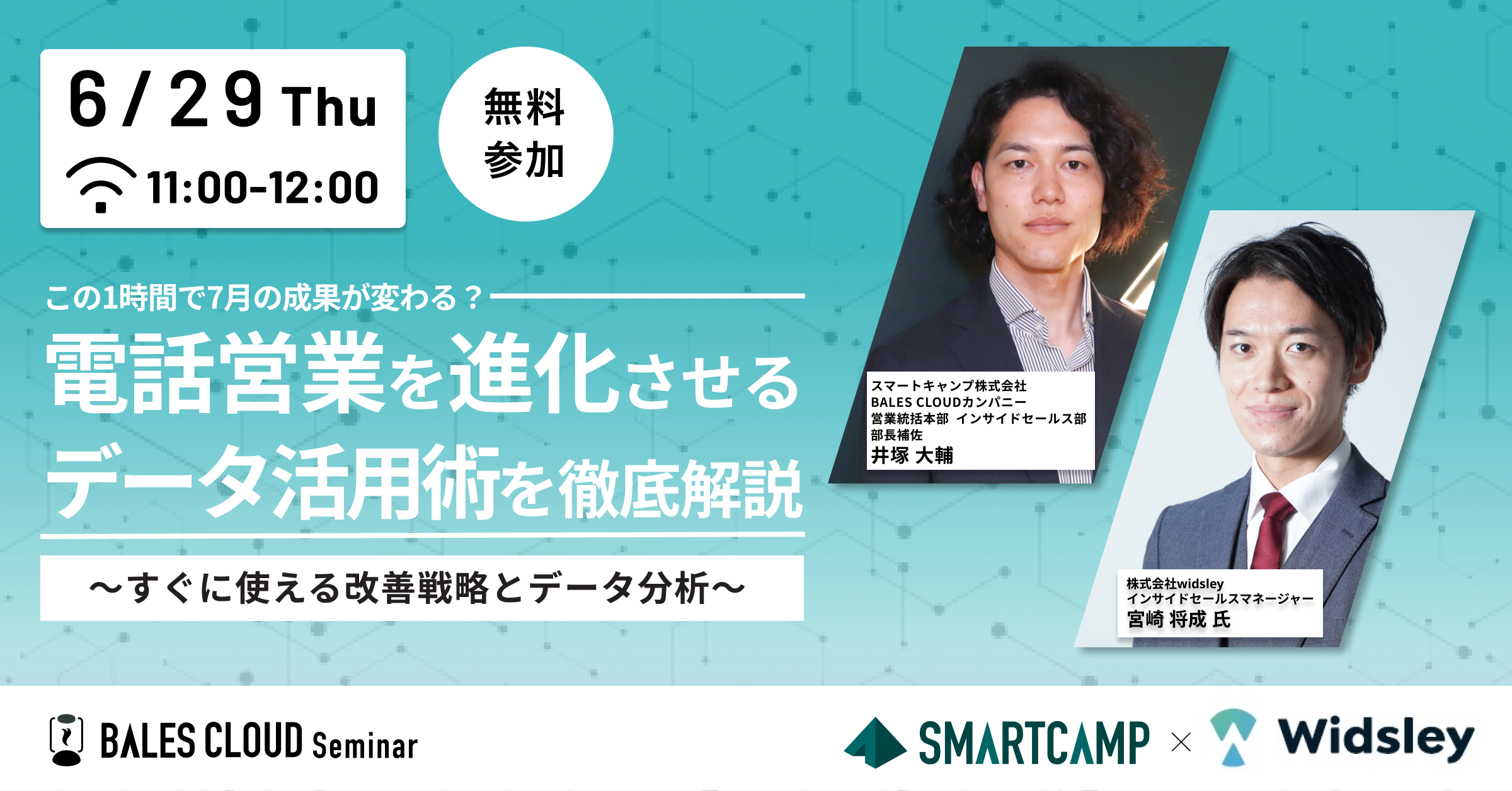 営業DXツール「BALES CLOUD」を運営するスマートキャンプ株式会社と、電話業務を効率化し、成果向上を実現する「Comdesk Lead」を提供する株式会社Widsleyの2社より、「電話営業でのポイント」と「データ分析の実践的な活用方法」についてお伝えします。
