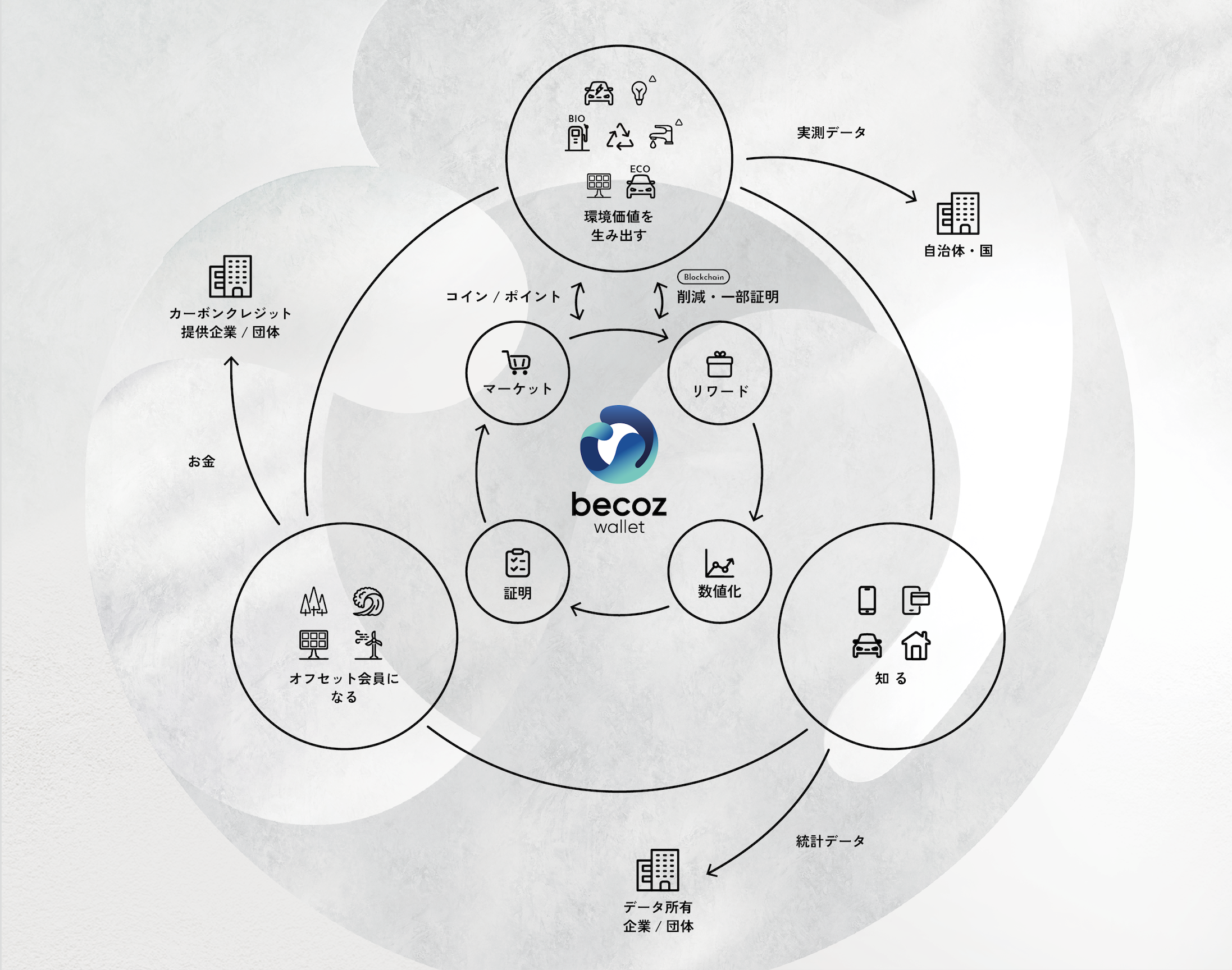当社は「becoz」事業を通して、環境配慮の行動や消費によって得られる価値を可視化・流通させ、コミュニティの環境価値を増幅させることを目指しています。「becoz」の詳細はサービスWebサイトをご覧ください。(https://becoz.ai/)