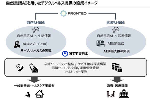 株式会社FRONTEO(本社:東京都港区、代表取締役社長:守本 正宏、以下FRONTEO)と東日本電信電話株式会社(本社:東京都新宿区、代表取締役社長:澁谷 直樹、以下NTT東日本)は、自然言語を用いたデジタルヘルスの展開に関する覚書を締結し、7月11日より協業を開始しました。