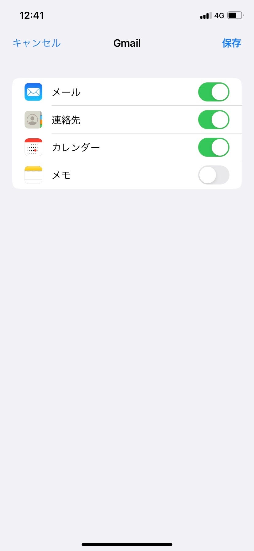 同期したい項目(例えば電話帳)をオンに切り替え、「保存」ボタンをタップして完了です。