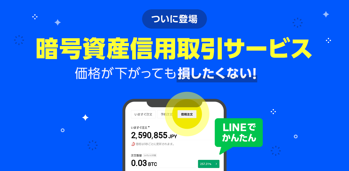 この度、多くのお客さまからのご要望にお応えし、暗号資産信用取引サービスの提供を開始いたしました。信用取引では、少ない資金でレバレッジ効果を活用した取引ができ、相場の下落局面でも利益を得ることが可能です※2。本サービスでは、保証金となる日本円を当社に預けていただき、当社から暗号資産現物を借り入れて取引する「信用売り」のみの提供となります。