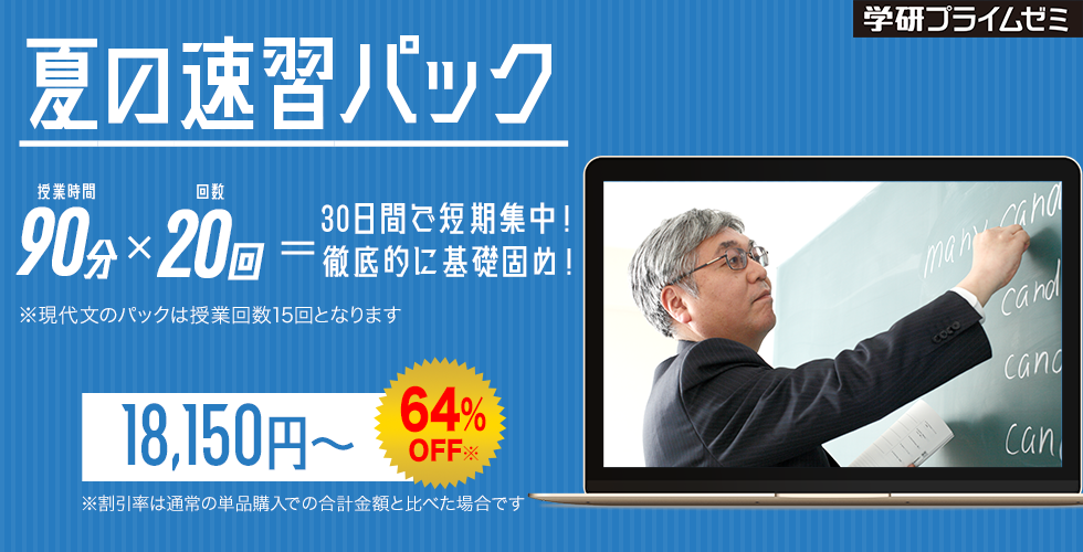 そこで学研プライムゼミでは、夏限定の「速習パック」&「夏割」講座を限定販売する「夏のキャンペーン」を実施、頑張る受験生を強力にバックアップします。