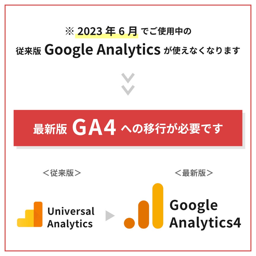 これまで解析を行なっていた従来型UAが、2023年6月末をもってデータ収集・解析を停止し、次世代ツールGA4(Google アナリティクス4プロパティ)へ移行する事となりました。