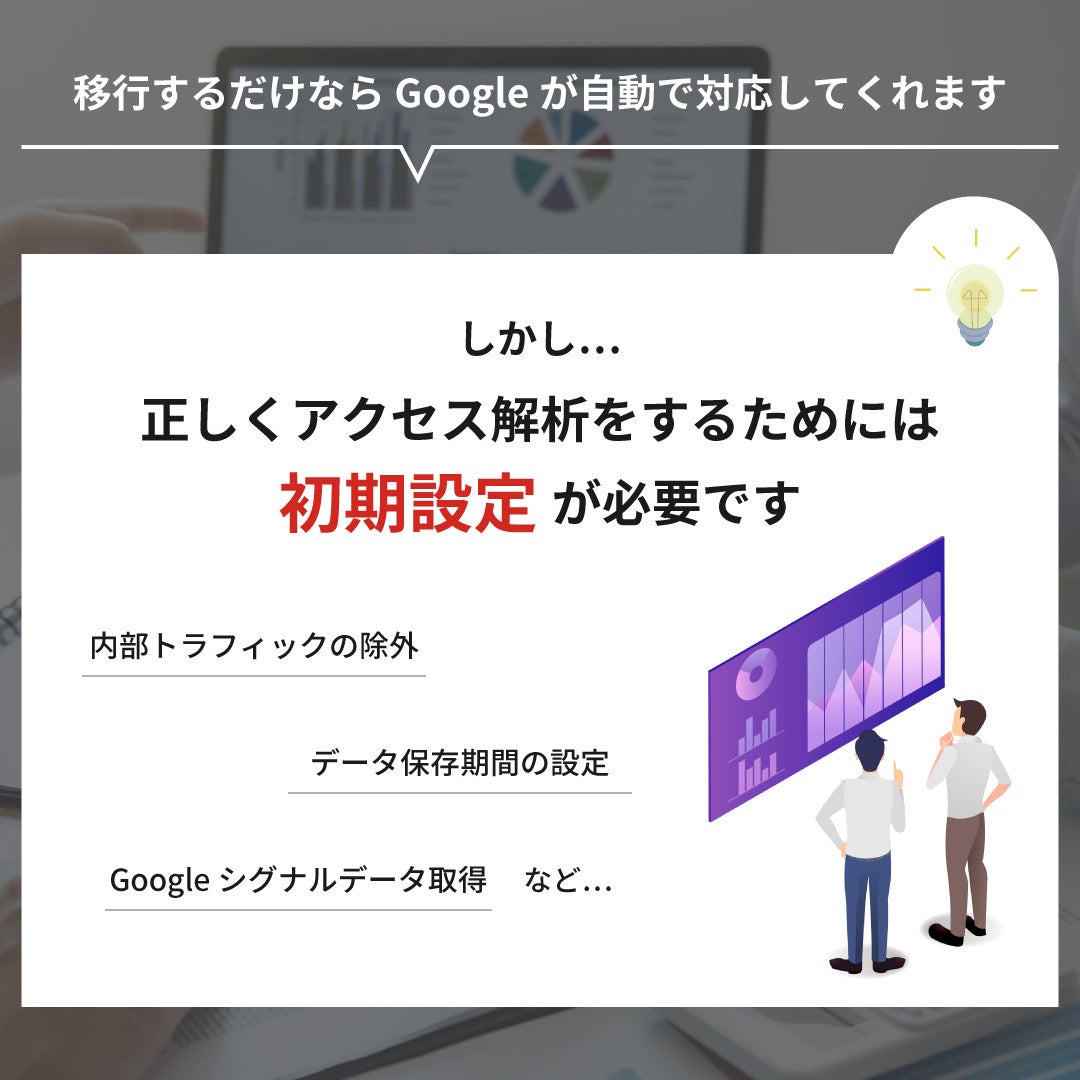 今月中に初期設定を完了させることで、後にデータ解析をする必要が出てきたタイミングで、正しいデータを取得でき、未来のリスクを回避できます。