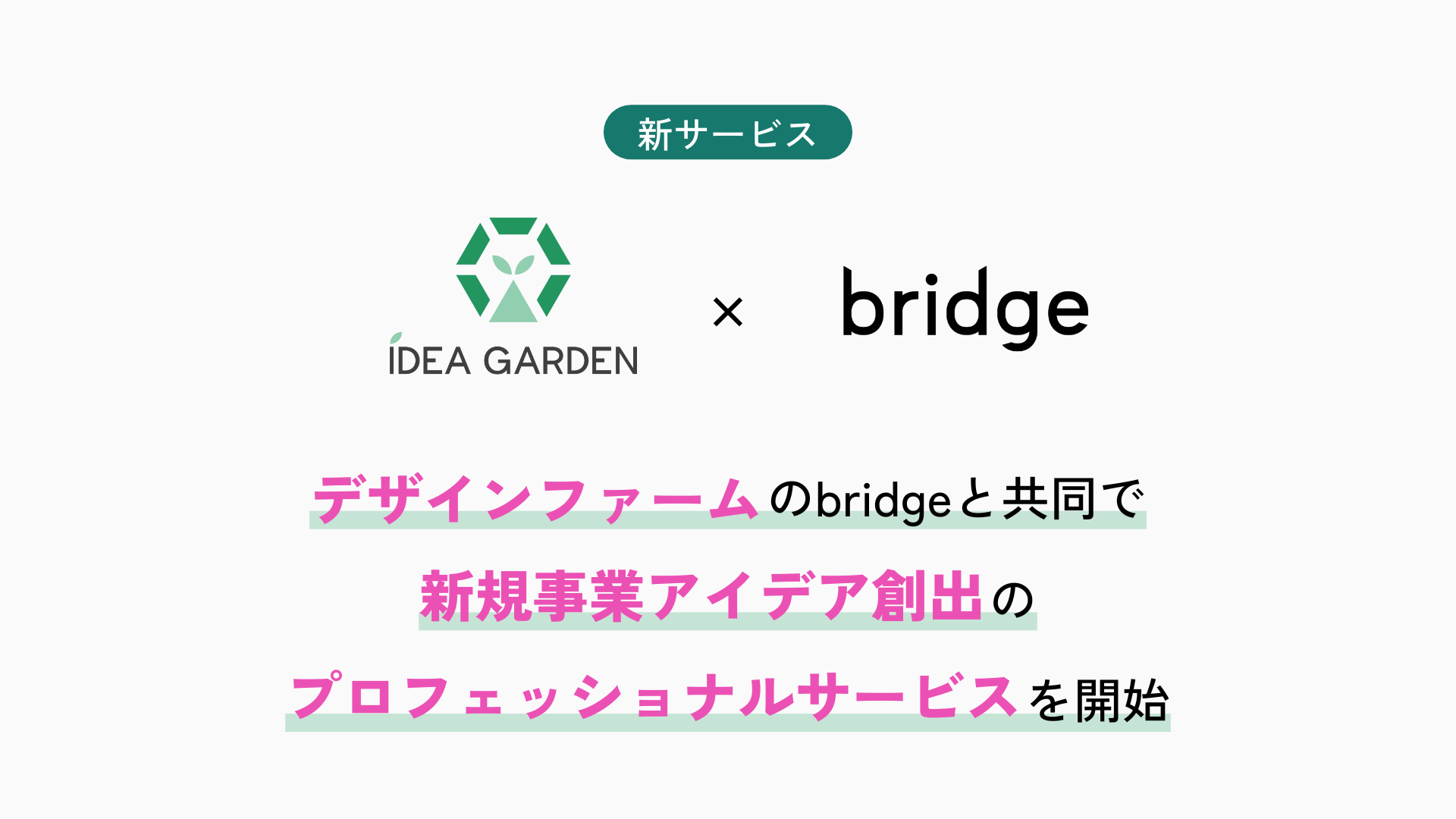 2021年11月のパートナーシップ契約締結以来、新規事業創出や新製品企画の活動における「社員のアイデアが出てこない」というお悩みと向き合い、IDEA GARDENを利用したワークショップを多数実施して参りました。アイデア発想の楽しさを最大化し、アイデアを全員で育てることをサポートするIDEA GARDENには、大きな可能性を感じており、今回共同でのサービス開発に至りました。わたしたちbridgeは、IDEA GARDENの活用を通じて、イノベーティブな組織への変革をお手伝いしていきます。