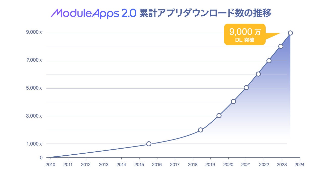 累計アプリダウンロード数が8,000万件を突破した2023年11月以降も、ホテル業界、自治体、ホームセンター業界、アパレル業界、小売業界、イベント業界などで活躍する大手企業を中心に数多くの企業の公式アプリを共同開発してまいりました。これらの企業に対しModuleApps2.0では、会員証やポイントカード、プリペイドカードのデジタル化といったユーザー体験の向上や、プッシュ通知機能を用いた情報発信による来店頻度の向上効果をもたらしております。
