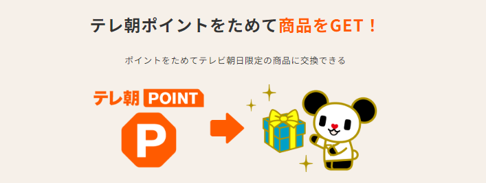 テレ朝ポイントの会員ページ「テレ朝ポイントモール」にて掲載商品と交換することができます。非売品の番組グッズや人気イベントのチケットなど、テレ朝ポイントならではのスペシャルな商品を数多くラインナップ予定!商品は定期的に更新します。