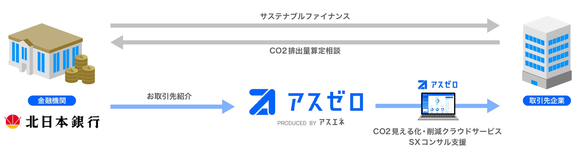 CO2排出量見える化・削減クラウドサービス「アスゼロ」のソリューションを提供する本連携では、各社の強みを生かし、ワンストップで地域企業の脱炭素経営の支援をいたします。
