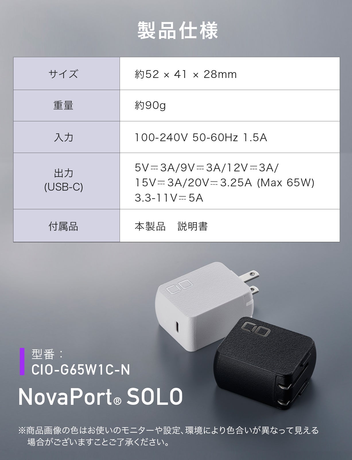- NovaPort SOLO 65W(CIO-G65W1C-N)の製品仕様