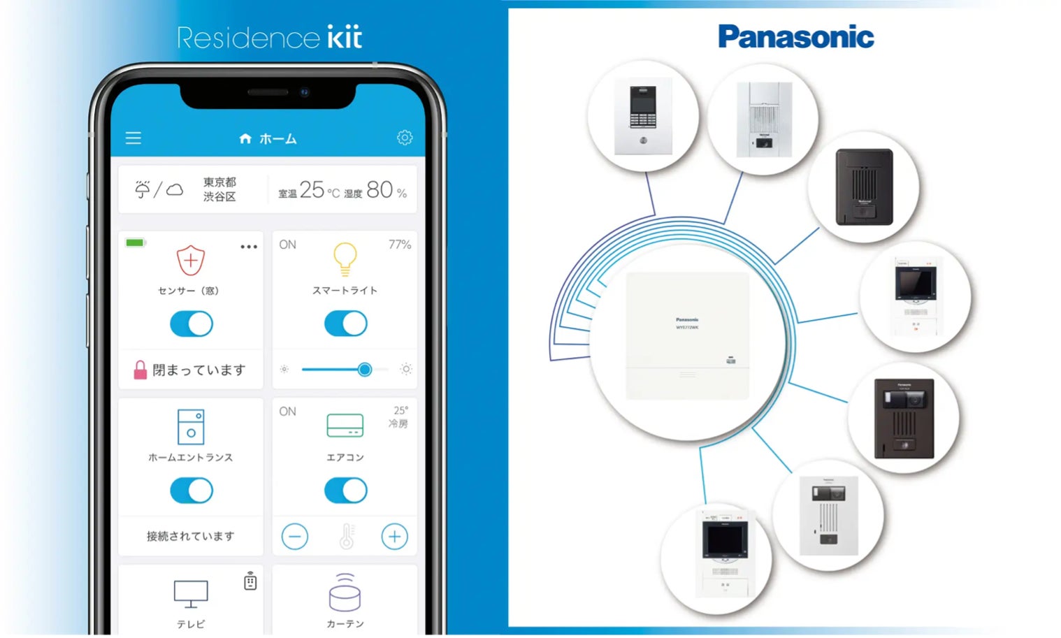 Residence kitは、入居者アプリ「Residence kit for Customer」とパナソニックが開発したインターホン機器との連携を行い、パナソニックも当アプリと連携するためのソフトウェア開発を行いました。これにより、入居者はアプリ上でインターホンシステムを操作できるようになりました。共同開発されたインターホンは、延べ面積500㎡以上のマンションや11階以上、無窓階・地階、床面積300㎡以上の3階以上など、共同住宅用の自動火災報知設備の義務化された場所でも機能します。今後は、中・大型マンションへの導入も計画しております。