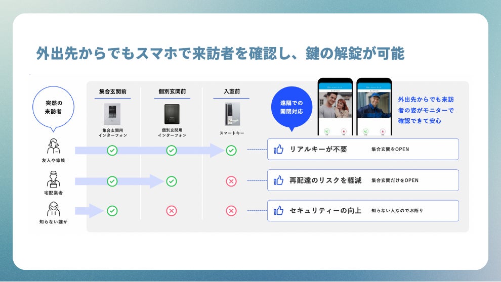 当社はこのような社会課題に対応するため、パナソニックとの共同開発による革新的なインターホンシステムを提供することで、快適でスマートな住環境の実現に貢献してまいります。