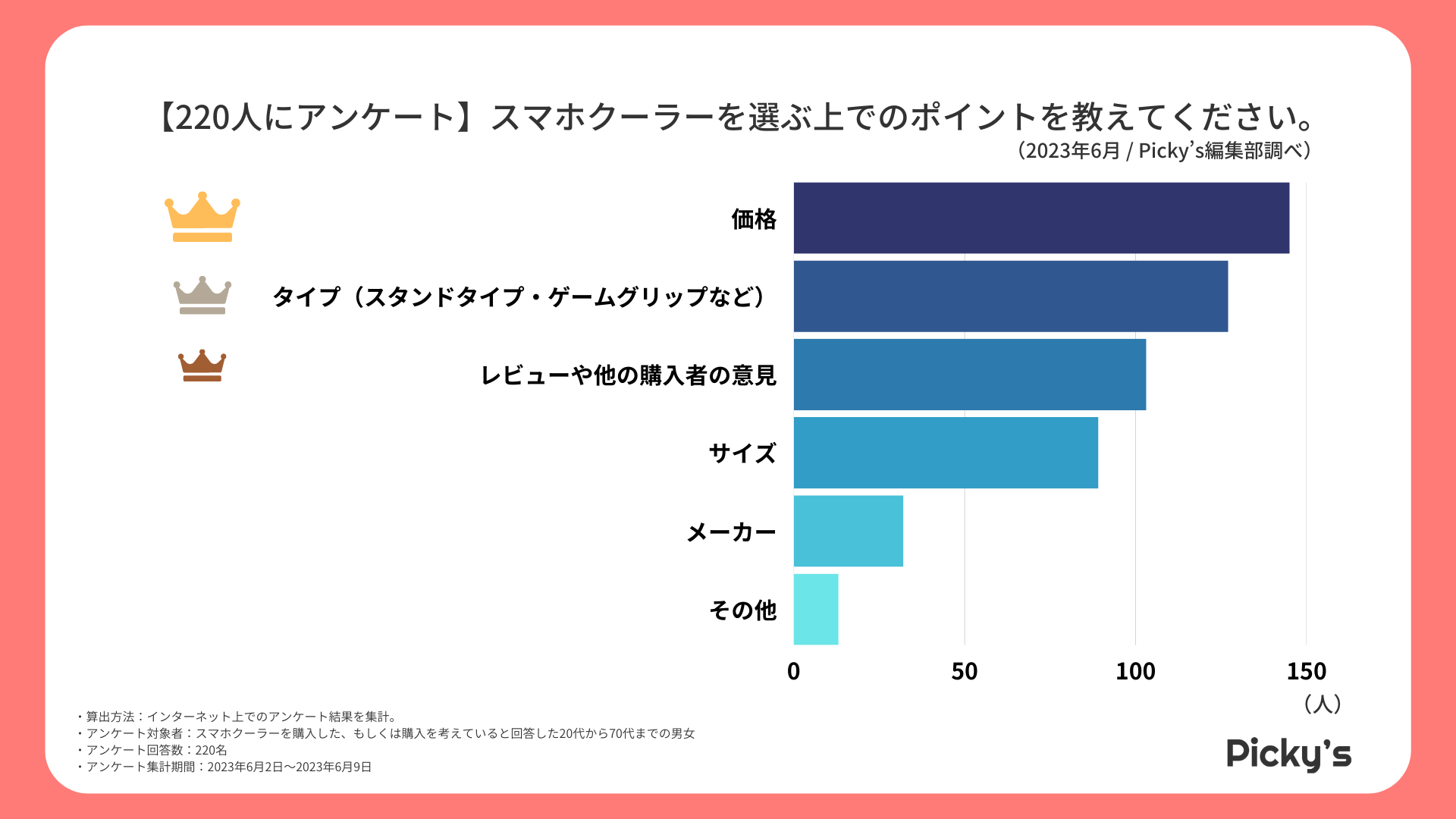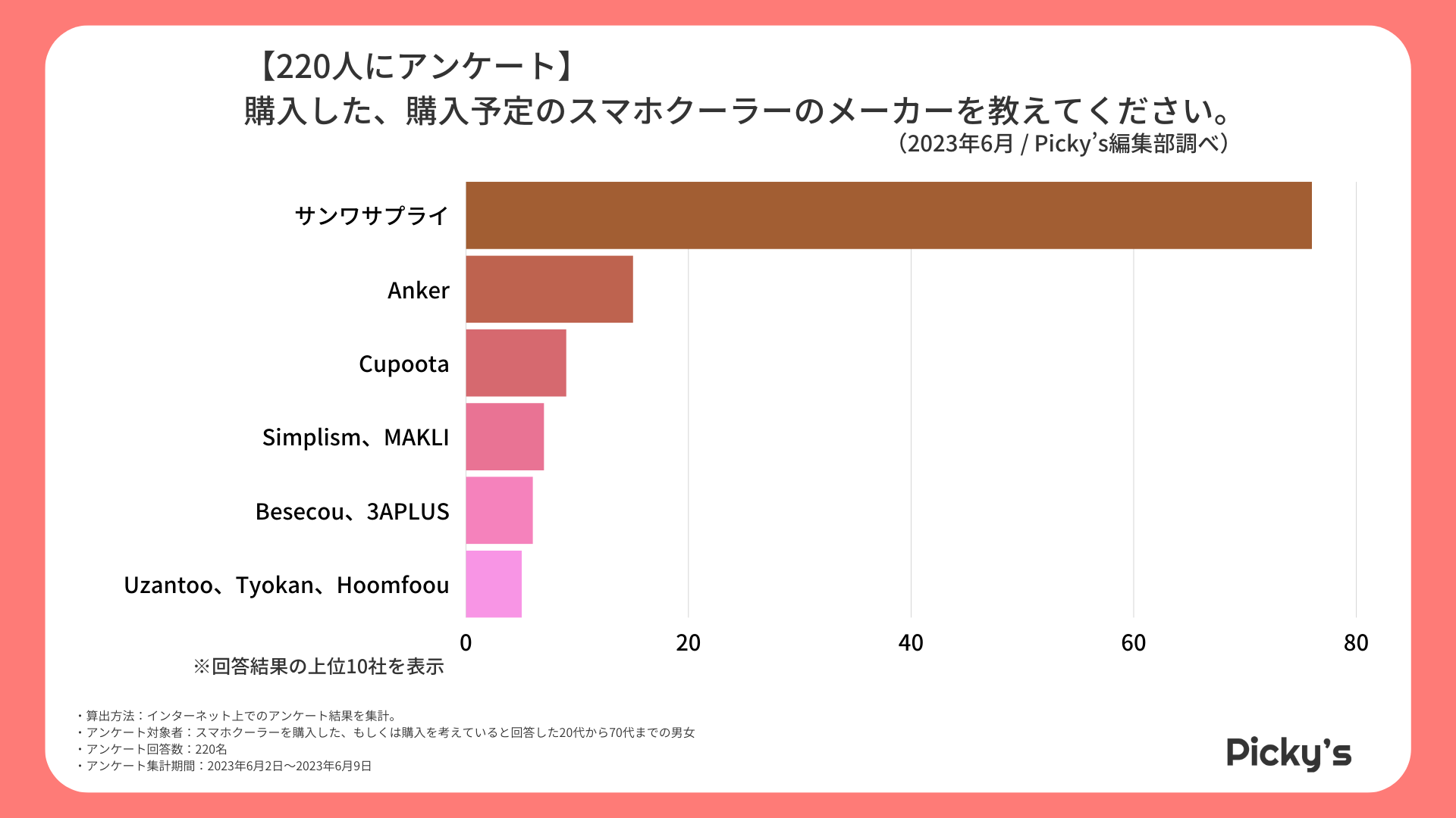 「Picky’s」は、インターネットショッピングにおいて、購入前に試せない・選ぶべきものがわからないという課題の解決を目標に、あらゆる商品のおすすめランキングや検証レビューを紹介するサイトです。このたびPicky’s(https://rentry.jp/note/)では、夏需要に先駆けて、スマホクーラーについてインターネット上でアンケート調査を行いましたので発表いたします。