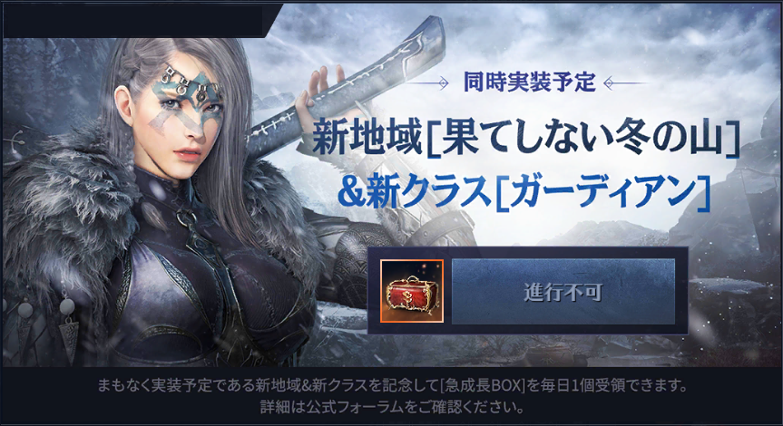 新地域[果てしない冬の山]&新クラス[ガーディアン]実装決定を記念し、キャラクター成長を促すイベントが開催!!