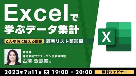 今回のセミナーでは、PC&IT講師として20年以上の経歴を持つ株式会社ワンズ・ワン代表取締役の古澤登志美氏にご登壇いただき、顧客リストを整理し、必要な形式に整形する際に使える文字列操作関数を中心に解説していただきます。事務職からデータ領域への転職を検討されている方などに特におすすめの本セミナー。ご興味をお持ちの方は、ぜひご参加ください。