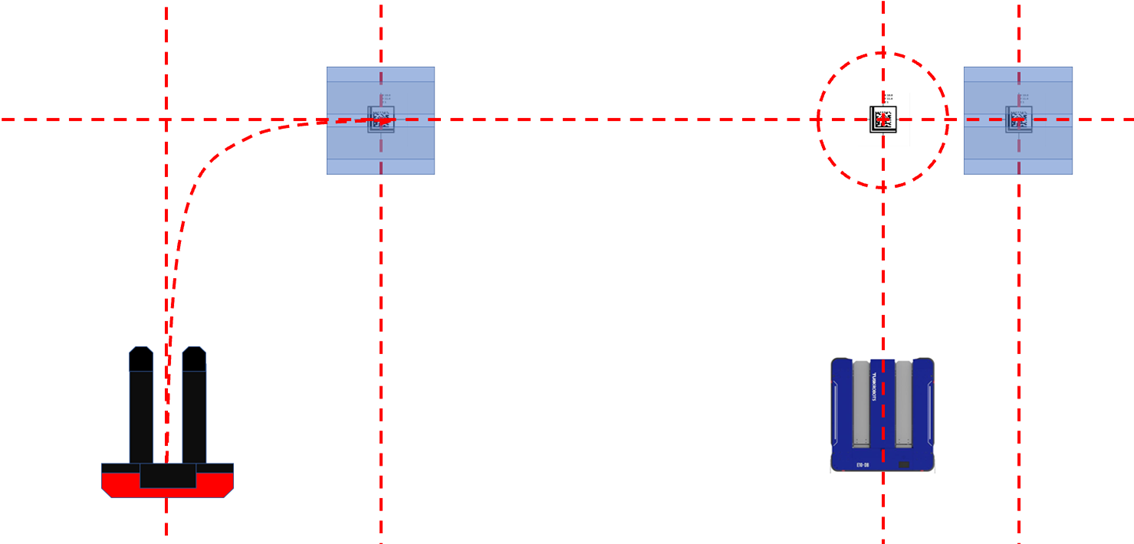 3.作業スペースの最大限の活用:フォークリフトや専用台車では、重い・後輪で旋回するといった特徴のため、工場内で広い通路やスペースを確保する必要がありました。本AGVは、回転半径ゼロでスピンターンすることができるため、わずか約1.6mのスペースで旋回が可能です。また、1.3mの通路で走行でき、後進も可能なため、スペースの有効活用に大きく貢献します。