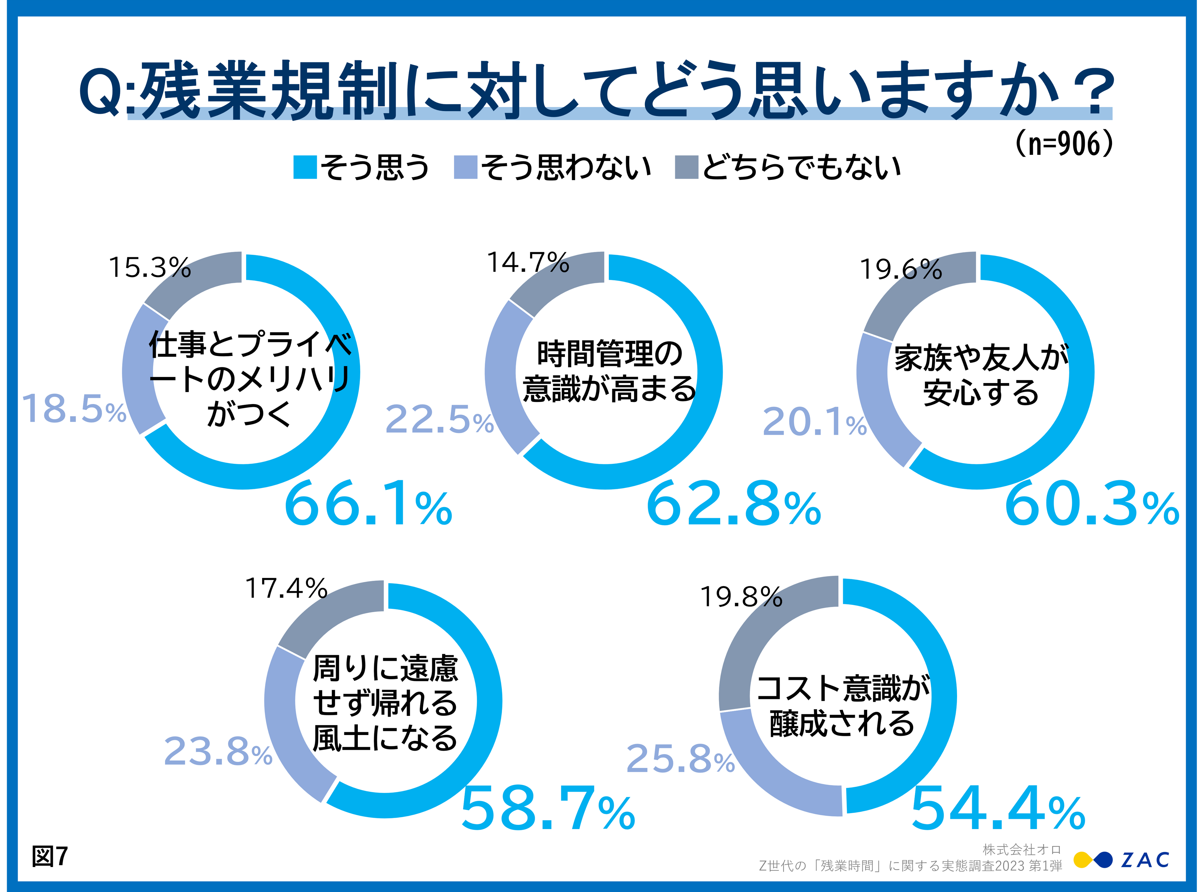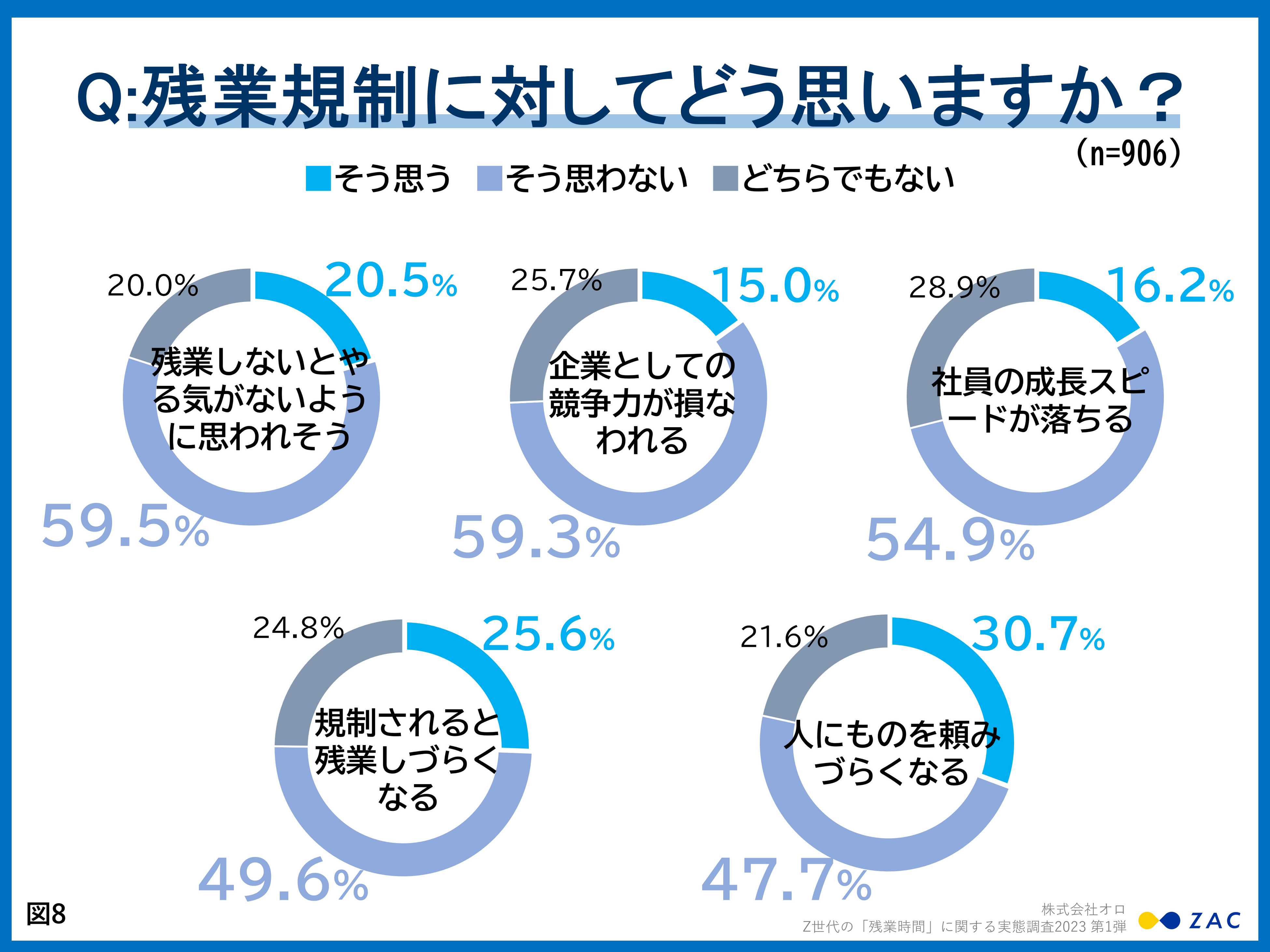 となっており、ここからもZ世代は「プライベートを重視」していることがわかると同時に、残業規制は「個人の成長に寄与するもの」とポジティブにとらえていることがわかる結果となっています。(図8)