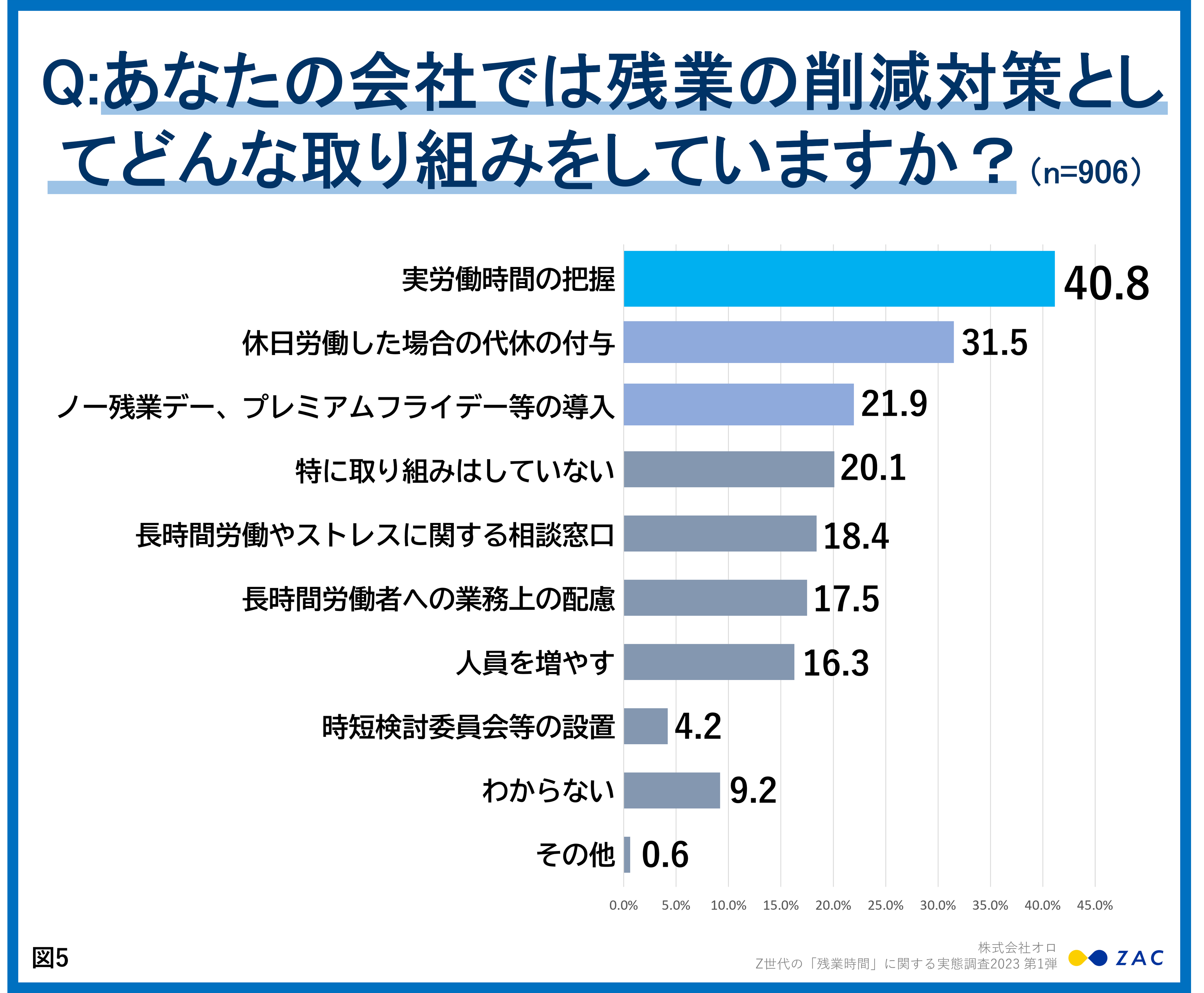 会社が行っている「残業の削減対策」は「実労働時間の把握」40.8%