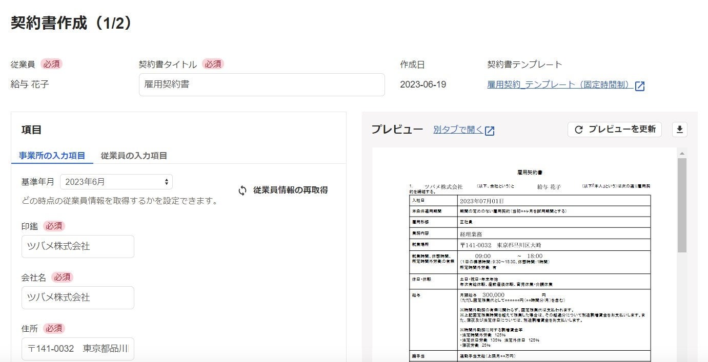 ・「freee人事労務」で電子契約サービス「freeeサイン」の機能を通じて契約書をはじめとした文書の作成から送信、管理保管ができる機能の提供を6月29日に開始します