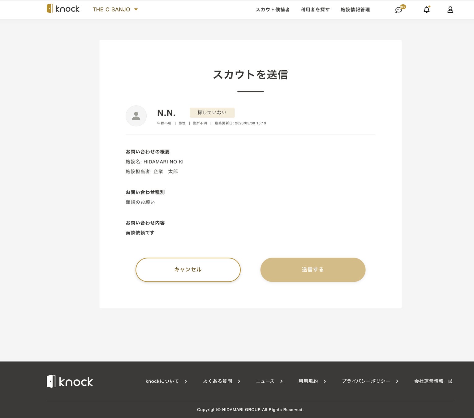 またこのサービスが浸透した未来を想定すると、県や市を跨いでの施設入居は行政の制度面が課題となる事例も出てくると思うので次のステップとしては行政が横の繋がりや壁をなくし、利用希望者が望む生き方を尊重できる制度に変化していくことが必要になると思います。このknockというサービスがその突破口となればいいと思います。』