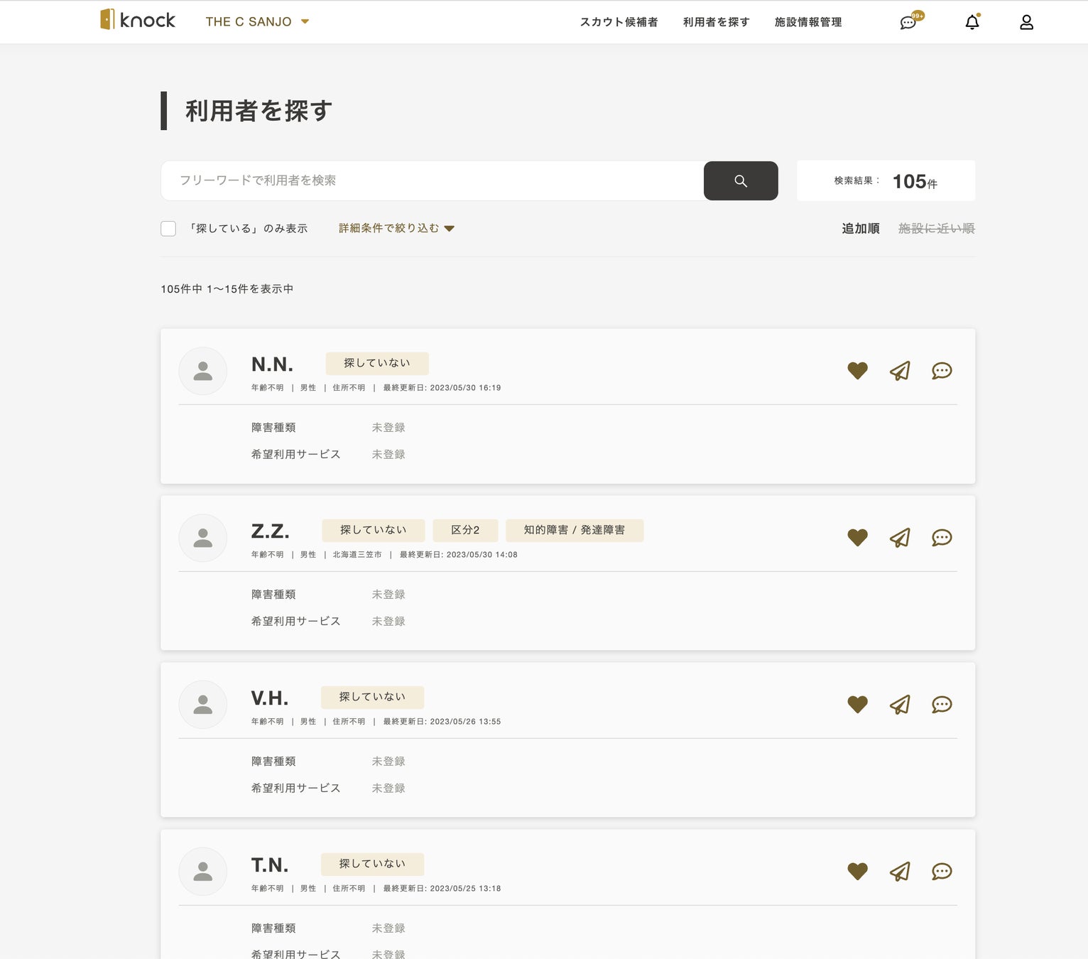 特に画期的と感じた点は施設側からオファーできる利用者様リストからそのままzoom面談に繋ぐことができる点については、従来は電話が主な連絡ツールだったことに比べ、スマートに利用希望の方へ入居を案内することができると感じましたし、面談に繋がらなくても利用希望の方にとっても選択肢が広がるシステムだと思います。