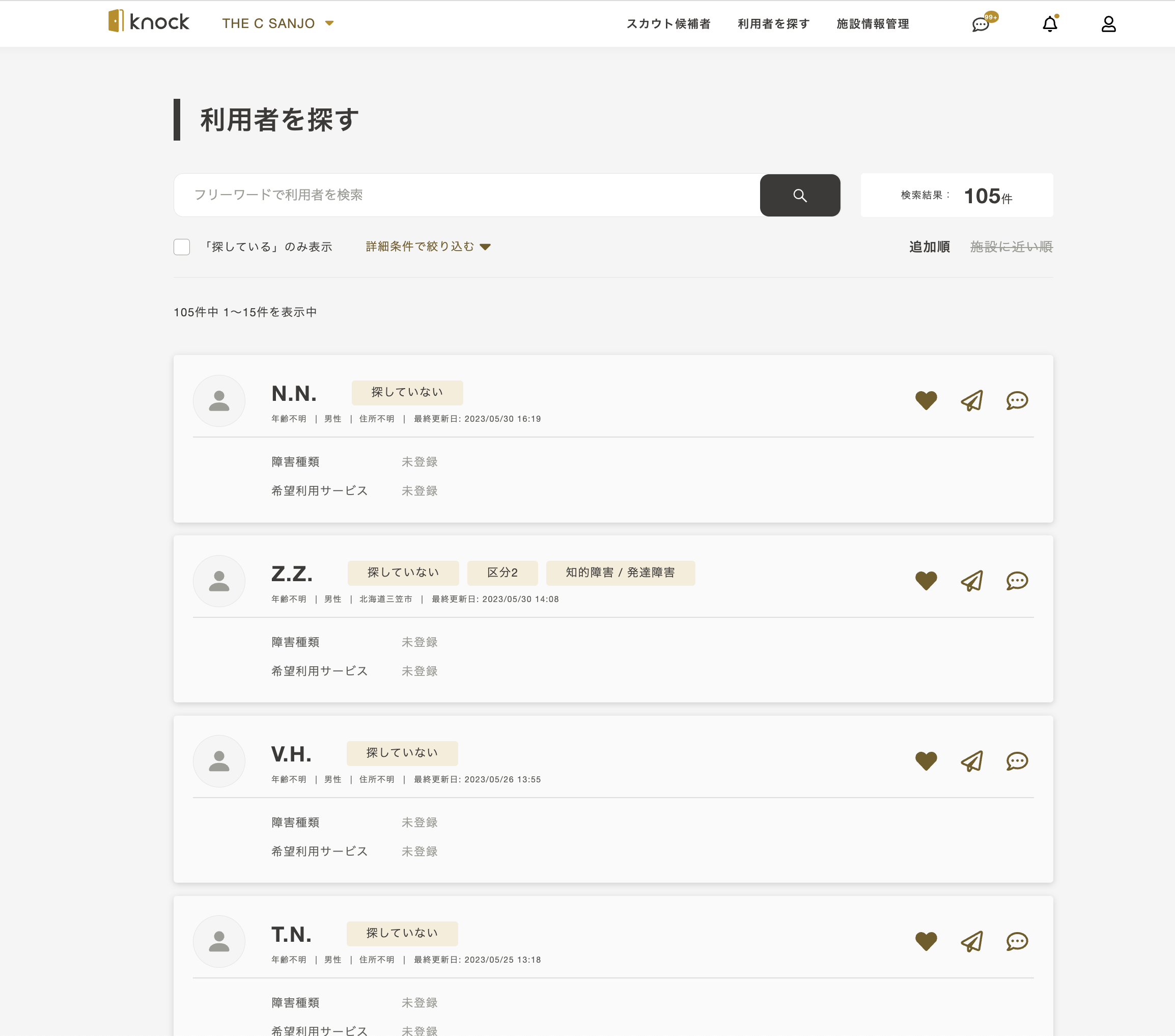 特に画期的と感じた点は施設側からオファーできる利用者様リストからそのままzoom面談に繋ぐことができる点については、従来は電話が主な連絡ツールだったことに比べ、スマートに利用希望の方へ入居を案内することができると感じましたし、面談に繋がらなくても利用希望の方にとっても選択肢が広がるシステムだと思います。
