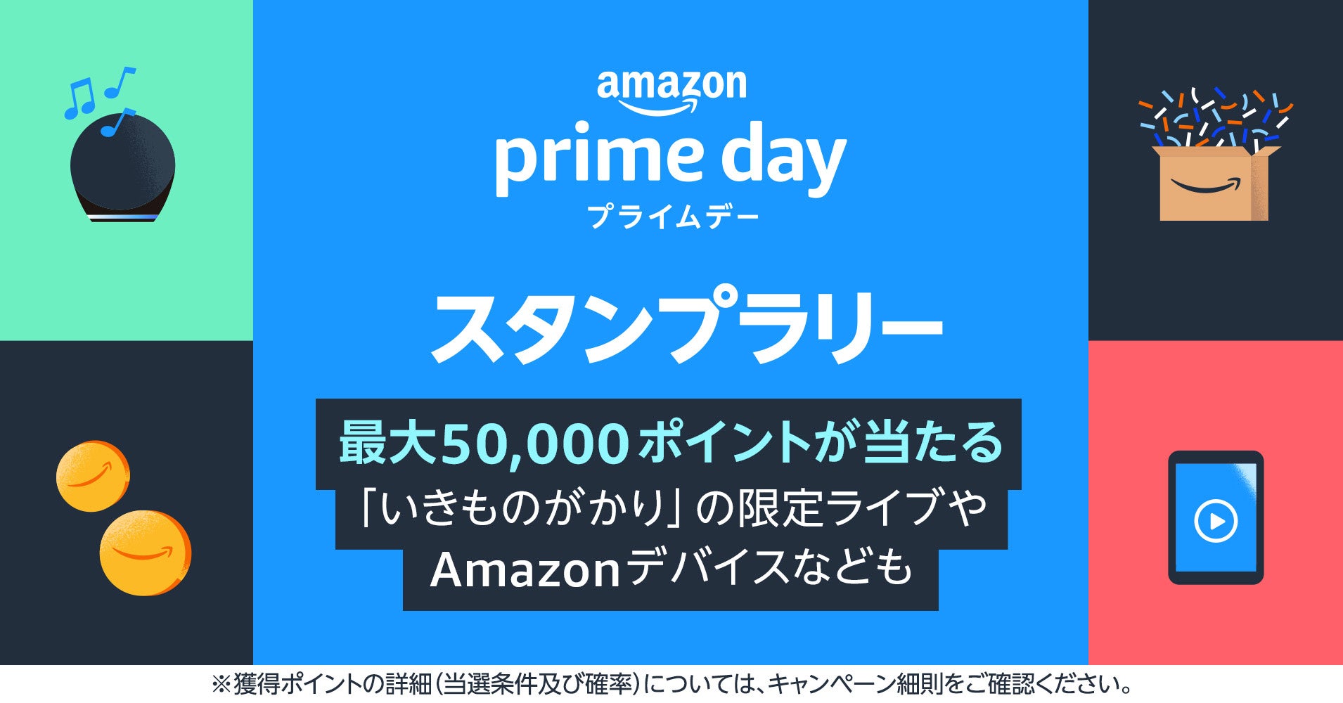 プライムスタンプラリーでは、キャンペーン期間中<6月21日(水)14時~7月19日(水)23時59分>にAmazonプライムの各対象サービスをご利用するなどして、スタンプを集めたプライム会員のお客様の中から抽選で「Echo Show 8」や「Fire TV Stick 4K Max」、Kindle本のクーポン、Amazon Music Unlimitedの12か月無料体験などをプレゼントします。また、5つのスタンプをすべて集めたプライム会員のお客様のうち、抽選で10名に1名に対し、Amazonポイントを最大50,000ポイント進呈します。<※獲得ポイントの詳細(当選条件及び確率)については、キャンペーン細則をご確認ください。>