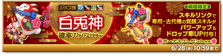 ■他覚醒スキルがぴょんとパワーアップ!「ジョブ別 白兎神確率アップガチャ」販売中!
