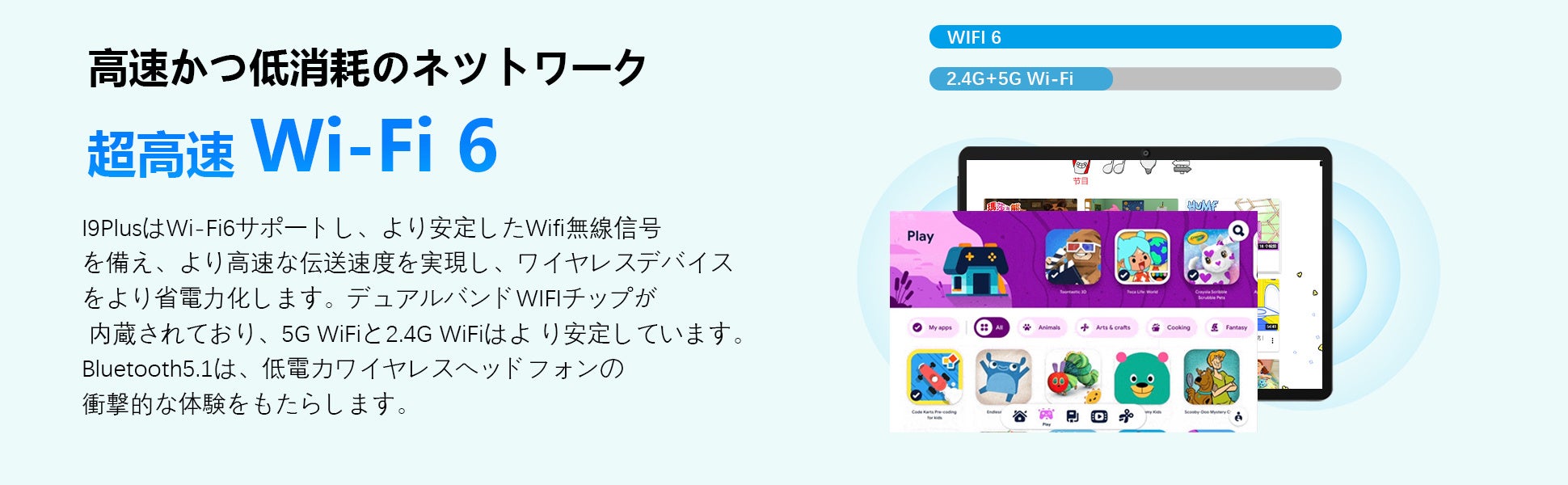 BMAX I9 Plus タブレットには第6世代のWiFiテクノロジーを使用しています。デュアルバンドWIFIチップが内蔵されており、5G WiFiと2.4G WiFiはより安定しています。さらに、MaxPad I9 Plus タブレットには、保護者モードが付属しています。子供の使用時間を制限し、子供に健全なインターネット使用時間をもたらします。健康管理、楽しみながら、あなたとお子様の健康を守ります。