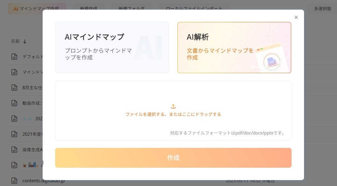 ② プロンプトや文書ファイルからの自動マインドマップ生成