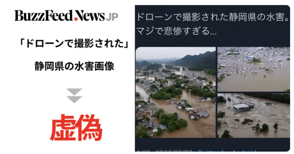 「ドローン撮影した静岡県の水害」と虚偽画像が拡散。AIでフェイク生成? 県は「デマやめて」
