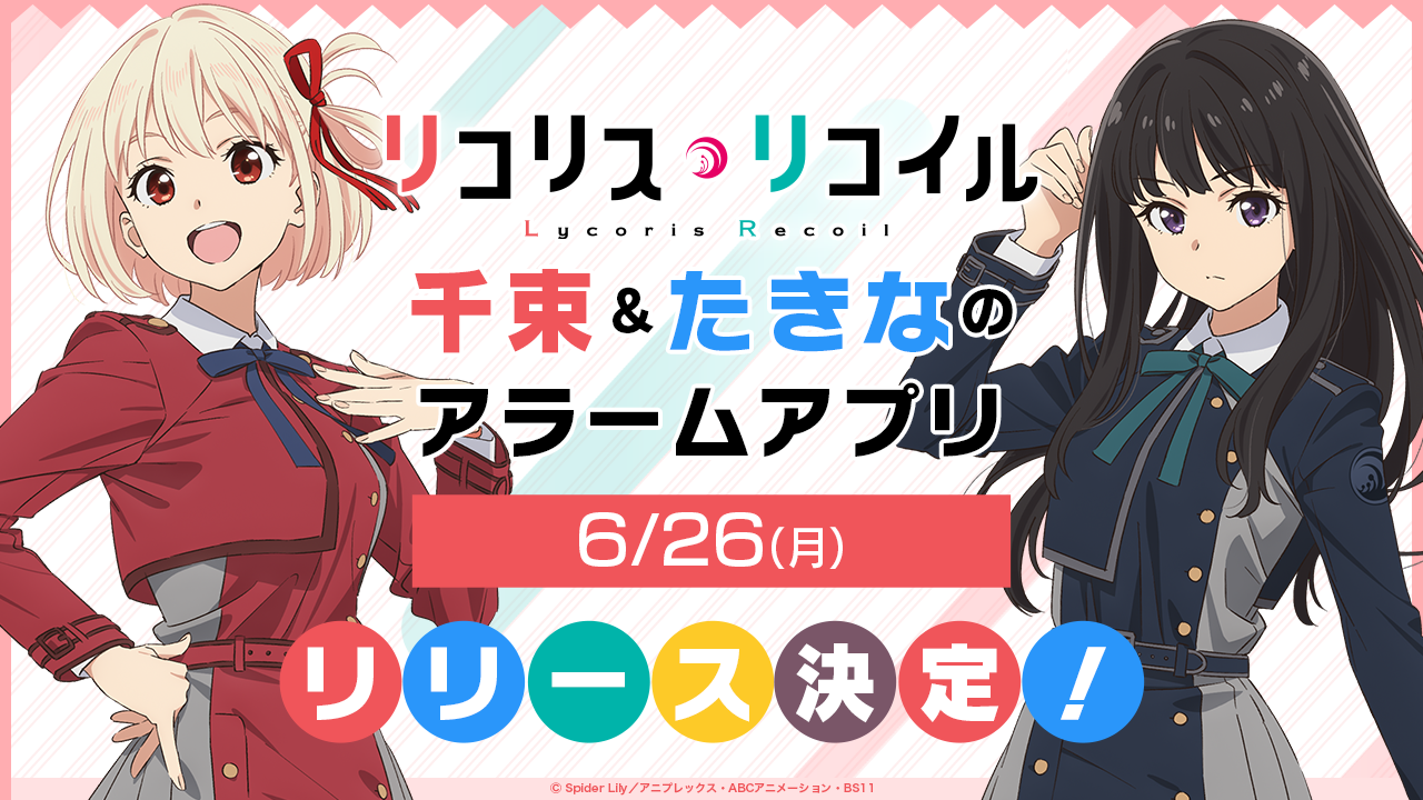 『「リコリス・リコイル」千束&たきなアラーム』は、TVアニメ『リコリス・リコイル』に登場する錦木千束と井ノ上たきなのボイスを収録したアラームアプリで、App StoreとGoogle Playでの配信を予定しています。