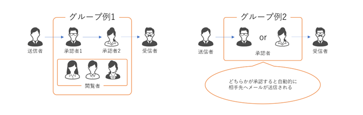 今回の改修で、ユーザーアカウントをグルーピングする機能(ユーザーは複数のグループに入ることが可能)を実装し、グループごとに承認、閲覧の権限を割振ることが可能となりました。