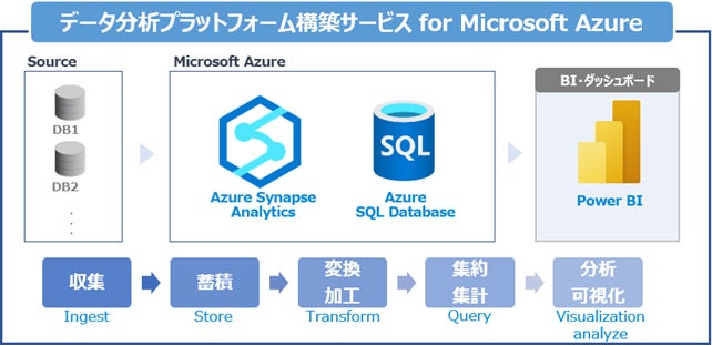 「データ分析プラットフォーム構築サービス for Microsoft Azure」は、Azure上にお客様のデータを収集・分析・可視化まで行える環境を構築し、お客様のデータ分析によるビジネスの成長を支援するサービスです。