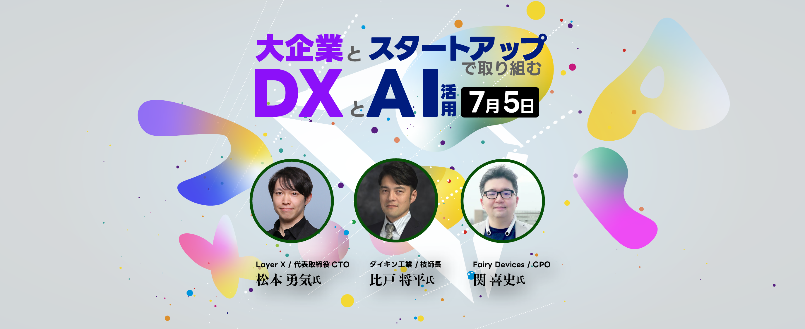LayerXの事例、オープンイノベーション大賞を受賞したダイキン工業とFairy Devicesの事例について当事者から紹介しながら、大企業とスタートアップの取り組みにおける開発組織の良い点・課題・などに議論します。
