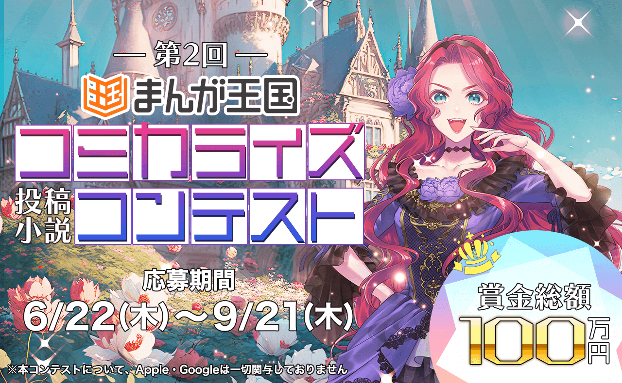 このたび、『ノベルバ』において「第2回まんが王国コミカライズコンテスト」を開催いたしました。第2回のテーマは「這い上がりロマンスファンタジー」です。本コンテストでは、不遇な状況から這い上がり、最後には愛と自由を勝ち取るロマンティックなファンタジー作品を募集いたします。最優秀作品に選出された作品は『まんが王国』でのコミカライズが確約され、さらに賞金30万円が贈られます。苦難と再生、そして愛の紡ぎ出す物語を描いてみませんか?皆様のご応募をお待ちしております!