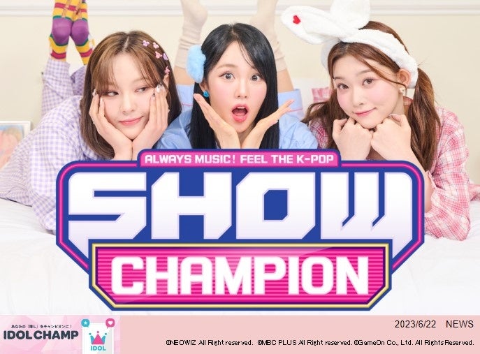 『SHOW CHAMPION(ショーチャンピオン)』とは、韓国MBC PLUSが毎週水曜日18:00~19:00にケーブルTVで放送する音楽番組です。ランキングスコアは『IDOL CHAMP』内からのファン投票も反映され、各要素のランキング結果の割合を元に(※)順位が決定します。日本国内からは、CATV、動画オンデマンドサービスを通じてご視聴いただけます。