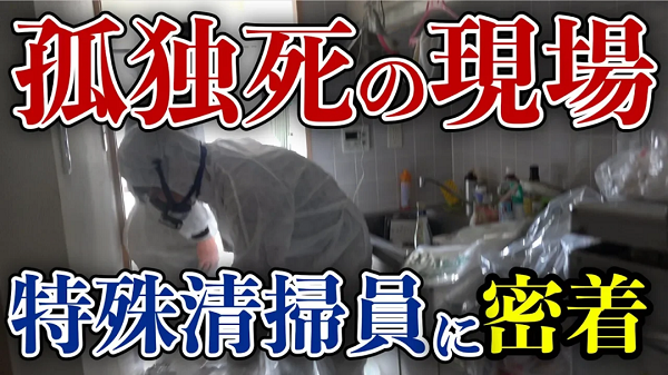 高齢化や生涯未婚率の上昇、家族関係の希薄化などで増加する孤独死。遺体が腐敗し、異臭ただよう現場で清掃を行う「特殊清掃業者」に密着した動画です。遺品が散乱する部屋を丁寧に片づけていく仕事ぶりを見た視聴者からは、2500件以上のコメントが寄せられました。