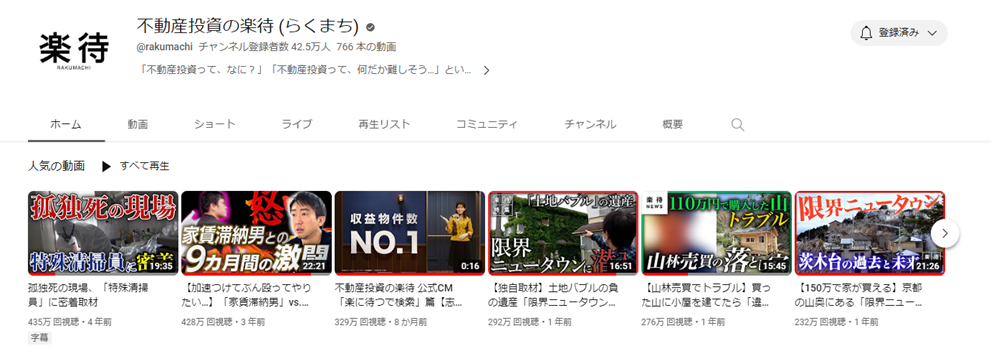 ■YouTubeチャンネル「不動産投資の楽待」とは