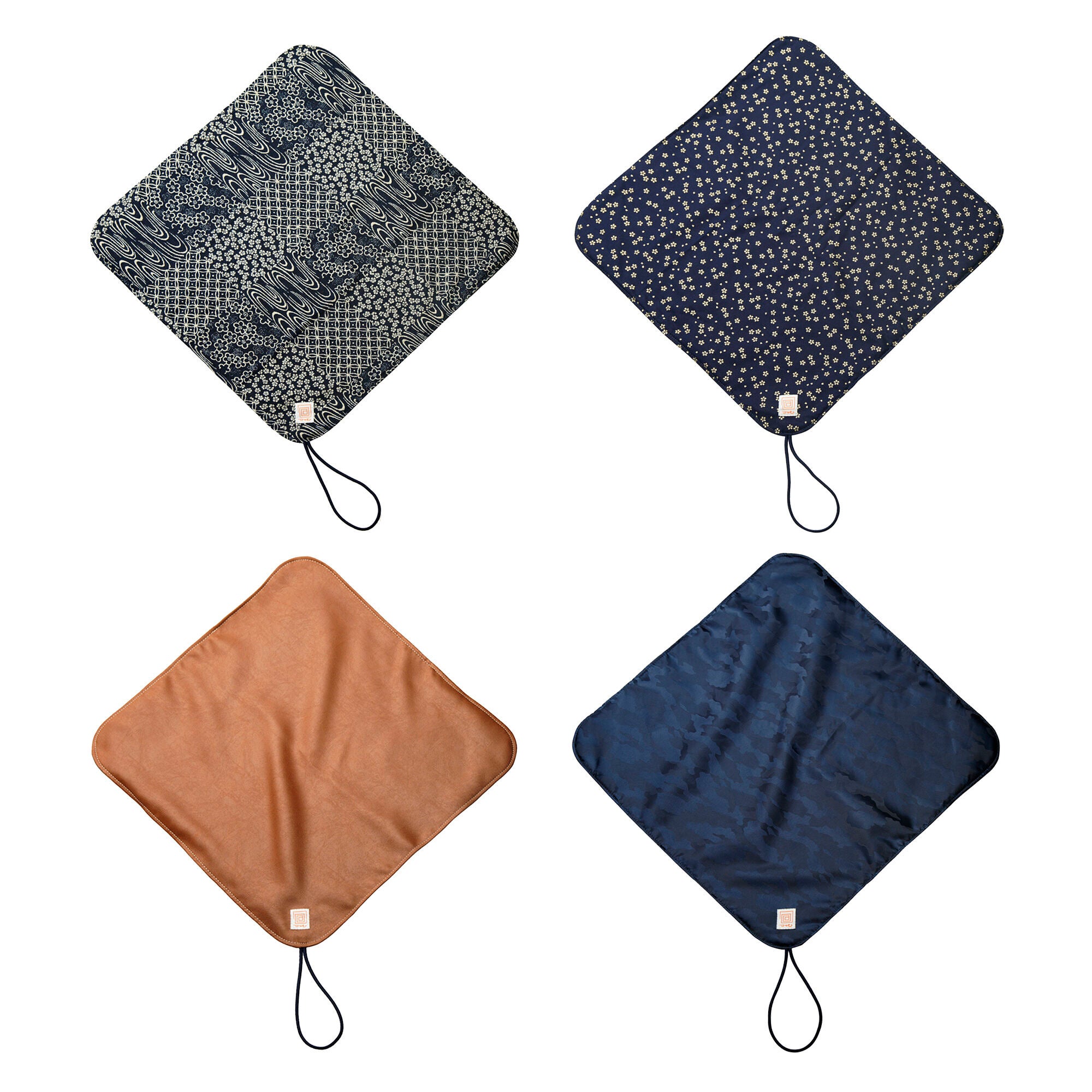 「包(つつむ) ラップクッション」は、カメラやタブレットを包んでゴム留めするだけで、機材をキズや汚れから保護できる手軽で便利なグッズです。裏面の角2か所にクリーニングクロスで使われる生地を採用しているため、液晶画面のお手入れなどにもお使いいただけます。表生地も柔らかな風合いの生地を採用。MサイズとSサイズの2サイズ展開です。