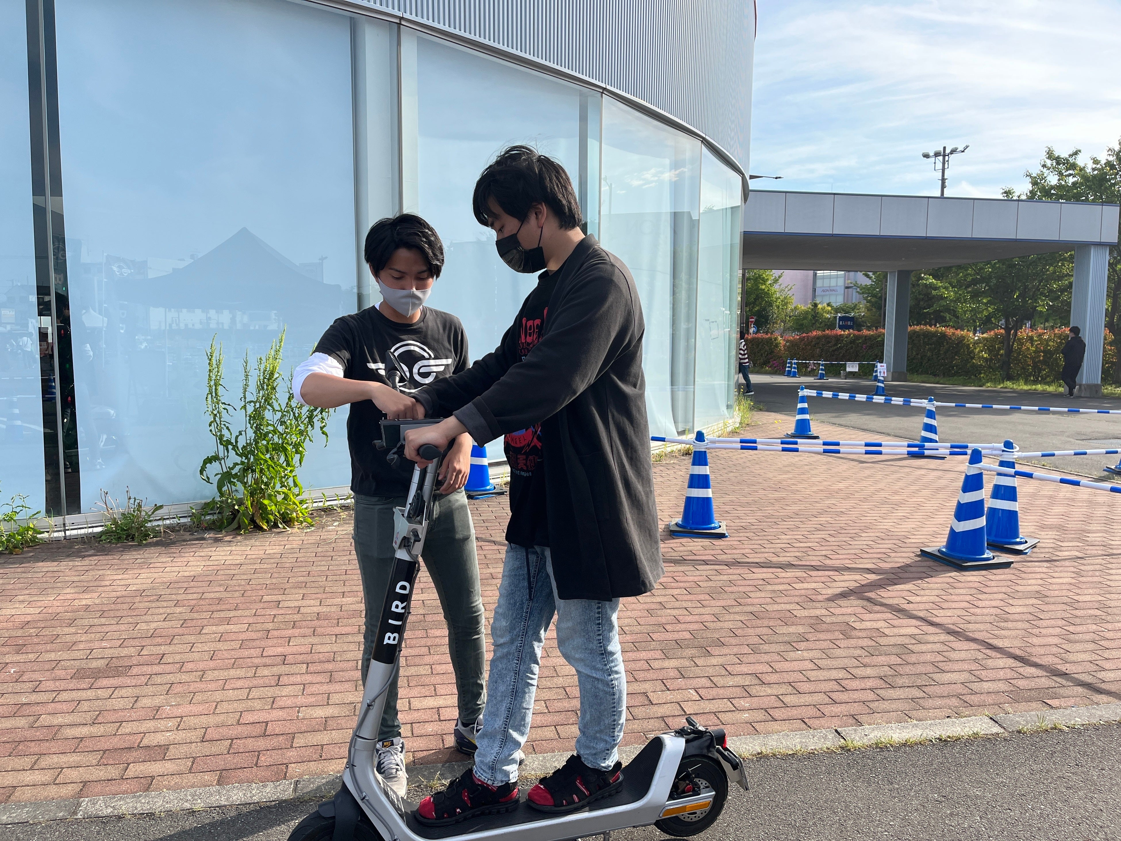内容:電動キックボードの試乗体験および安全啓発のチラシ配布。