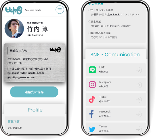 その中で今回販売を開始する『デジタル名刺Whoカード』は、名刺情報だけなく、SNS情報やその他伝えたい情報の共有までカードをスマートフォンにタッチするだけで一括共有できます。情報の更新も管理画面の更新で対応できるため、名刺の刷り直し、廃棄が無くなるため経費削減や環境保全にもつながります。『デジタル名刺Whoカード』は、現代のコミュニケーションに合った紙を使わない「エコで手間のない」これからの名刺の形になります。