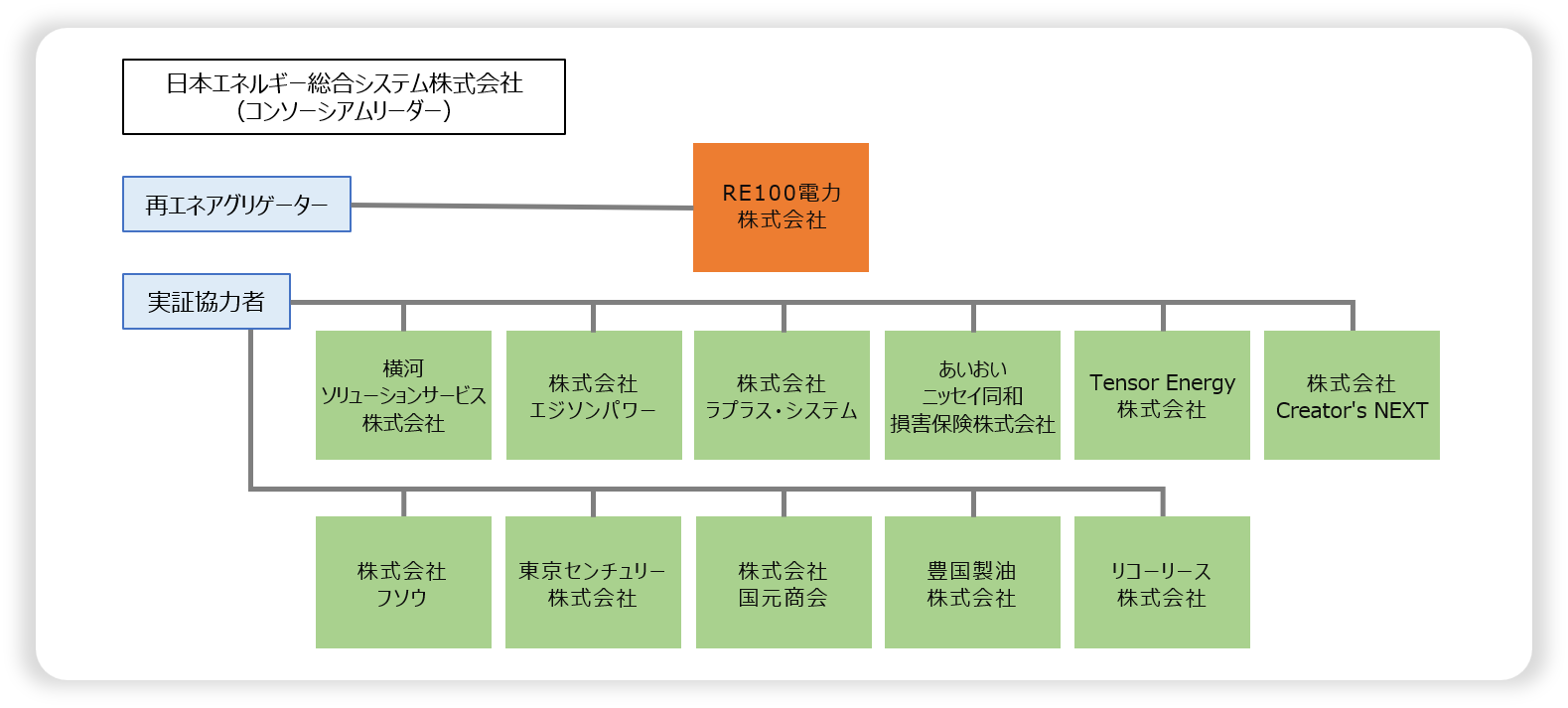 横河ソリューションサービス株式会社、株式会社エジソンパワー、株式会社ラプラス・システム、あいおいニッセイ同和損害保険株式会社、Tensor Energy株式会社、株式会社Creator’s NEXT、株式会社フソウ、東京センチュリー株式会社、株式会社国元商会、豊国製油株式会社、リコーリース株式会社 |