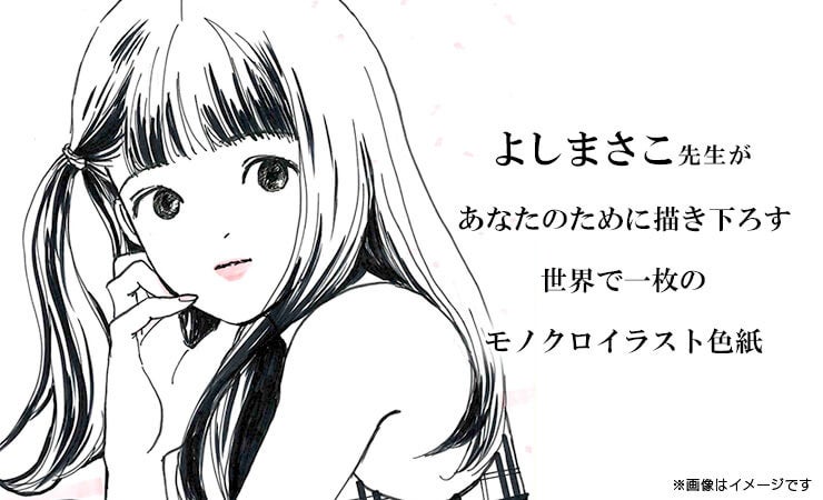 今回は、代表作「Boo Boo」や「うてなの結婚」を手掛け、漫画だけでなくエッセイやイラスト等幅広い作品を描き続けているよしまさこ先生によるセミオーダーのモノクロイラスト色紙販売を開始いたします。また、キャラクターのリクエストに応えて描き下ろすセミオーダーのモノクロイラスト色紙に加えて、「Boo Boo」から限定1枚の販売となる完成品モノクロイラスト色紙の2つの商品をラインナップに追加しております。