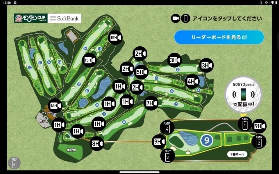 この実証実験は、ゴルフ場という有線・無線ともに制約がある通信環境において、オンデマンド型ソリューションとして移動基地局車を配備し、ミリ波やSub6の5Gを活用して、ライブ映像配信に特化したビジネスユース向けの通信ネットワークを構築することで、リッチな映像コンテンツの配信が可能なことを実証するために実施したものです。全18ホールの25カ所で撮影した映像を、ソフトバンクの映像配信プラットフォームを活用し、特設ブース(ダイヤモンドボックス)に配備したタブレットで映像を切り替えながら楽しめるようにしました。