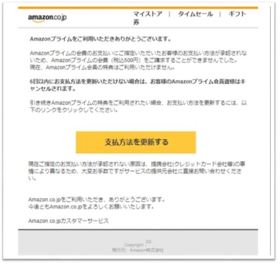件名:Amazon.co.jp: お支払い方法が承認されませんでした# XXX-XXXXXXX-XXXXXXX